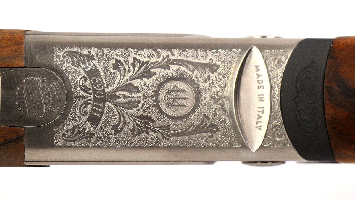 This is a used Beretta 690 Field III shotgun chambered in 12 gauge. It features 28-inch barrels, 3-inch chambers, 14.875-inch length of pull, automatic safety, ejectors, screw-in modified choke, screw-in full choke, and engraved receiver with coin finish. Overall, this shotgun is in good condition with some handling wear on the barrels. Top lever is right of center and lockup is tight. This would be a good choice for hunting. Buy online today!