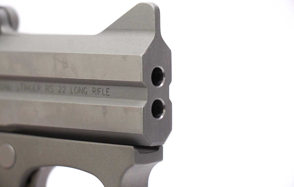 This is a used Bond Arms Stinger Derringer pistol chambered in 22 Long Rifle. It features 3-inch barrels, 2-round capacity, cross-bolt safety, plastic grips, and stainless finish. Includes factory box and instruction manual. Overall, this Derringer is in good condition with normal use wear on the barrels. This would be a good choice for concealed carry. Buy online today!