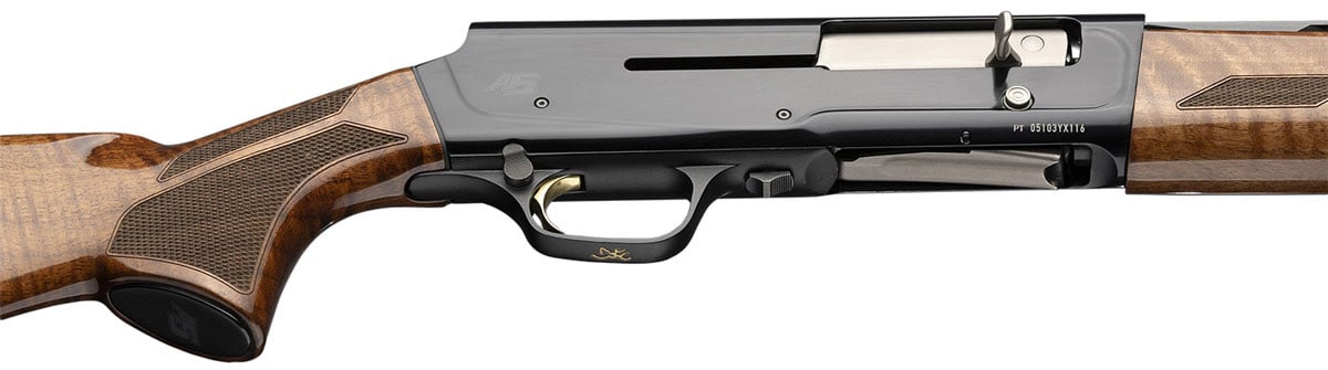 The Browning A5 lightweight, autoloading shotgun is ready for hunting. Features include a compact receiver; gloss Turkish walnut stock; recoil-operated kinematic drive; Inflex II recoil Pad; Fiber-optic front sight and ivory mid-bead sight; Invector-DS choke tube system. Includes full, modified and improved cylinder chokes; 1/4" and 1/2" stock spacers.