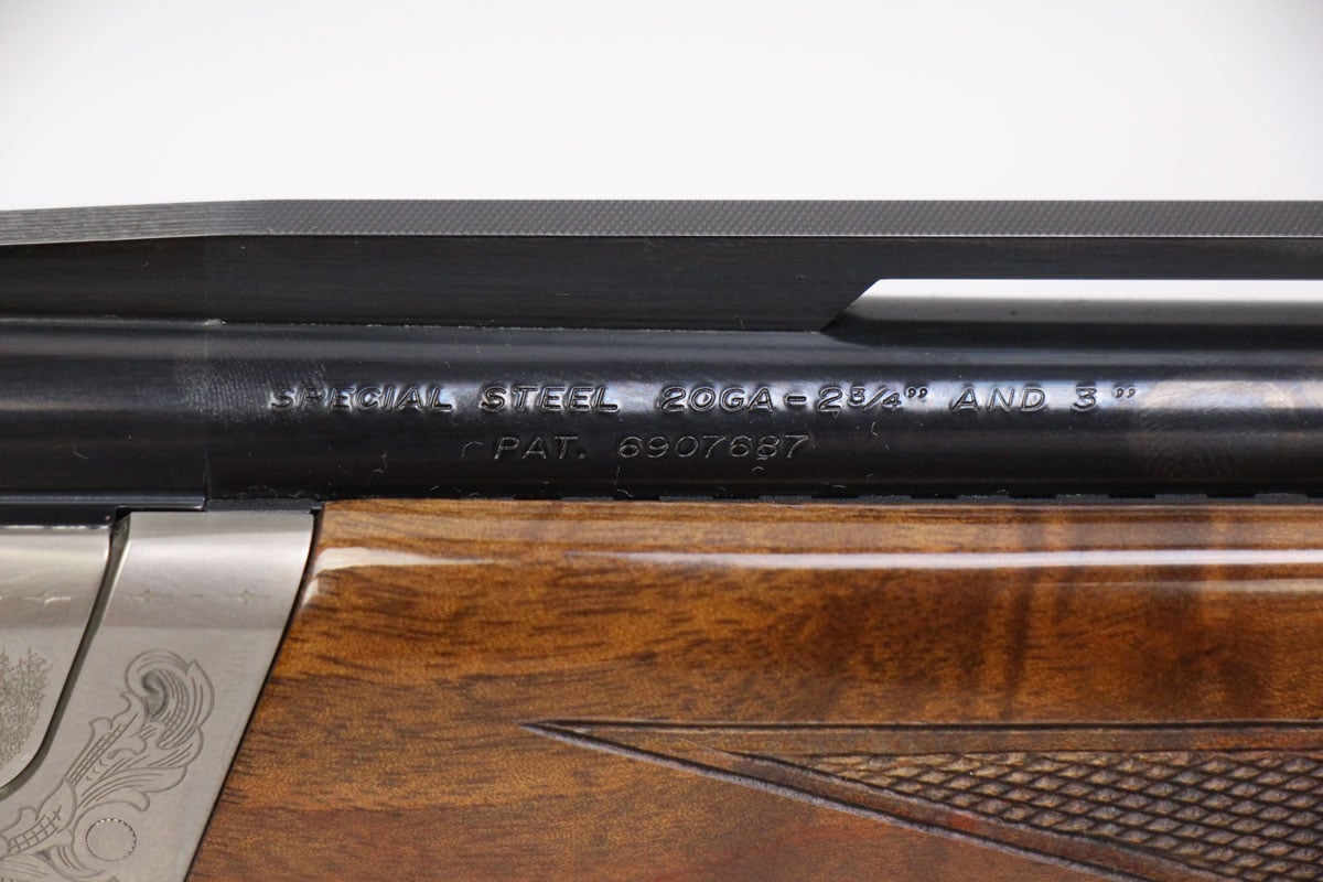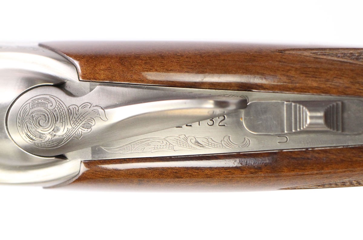 This is a used Browning Cynergy Grade 6 shotgun chambered in 20 gauge. It features 28-inch barrels, 3-inch chambers, 14.25-inch length of pull, ejectors, manual safety, screw-in chokes, gloss finished walnut stock, and engraved silver nitride receiver. Includes factory box, manual, skeet choke, improved cylinder choke, modified choke, and choke tube wrench. Overall, this shotgun is in very good condition with minimal wear. Based on Browning's serial database, this shotgun was manufactured in 2011. This would be a great choice for skeet shooting. Buy online today!