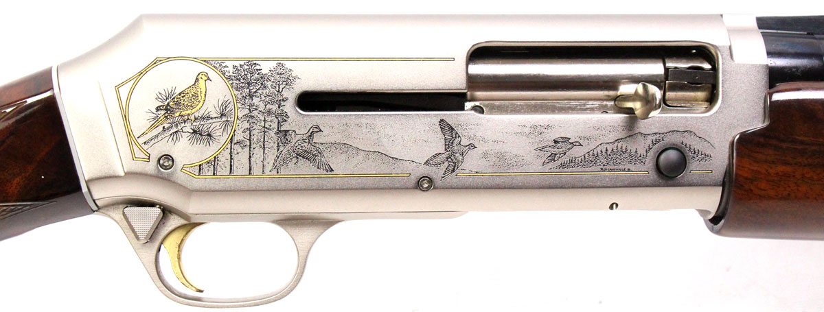This is a used Browning Gold Classic High Grade shotgun chambered in 20 gauge. It features a 26-inch vent rib barrel, 3-inch chamber, 14.25-inch length of pull, cross-bolt safety, screw-in chokes, high gloss walnut stock, and nickel-plated receiver. Includes factory box, manual, choke tube wrench, full choke, modified choke, and improved cylinder choke. Overall, this shotgun is in good condition with some finish wear on the trigger and some handling wear on the stock. Based on Browning's serial lookup, this shotgun was manufactured in 2003. This would be a good choice for hunting. Buy online today!