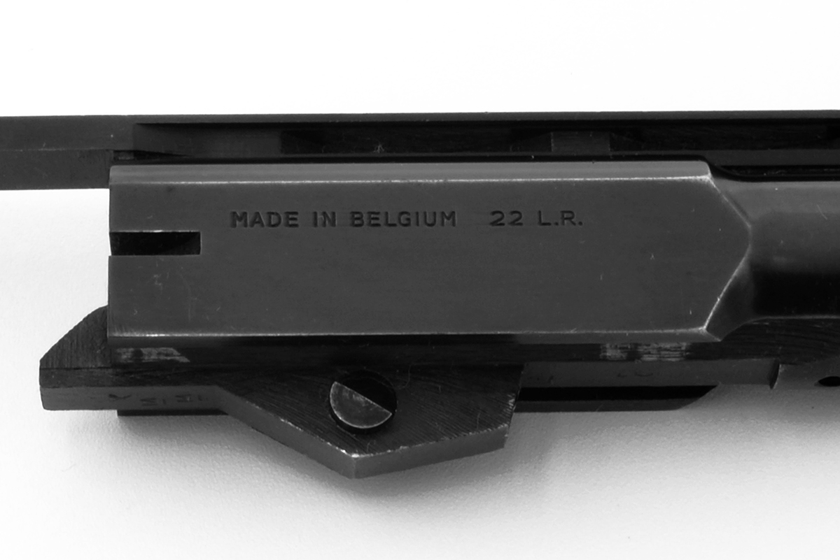 This is a vintage Belgian made Browning Medalist barrel. It features a 6.75" vent rib barrel with bottom slot for weight system, adjustable rear sight, it is marked "BROWNING ARMS COMPANY" on one side and 'MADE IN BELGIUM 22 L.R." on the other. The bottom of the barrel is marked "BROWNING'S PATENT" along with numbers and Belgian proof marks. Overall condition is good with some wear and light scratches to the bluing, the bore shiny with nice rifling. Buy online today!