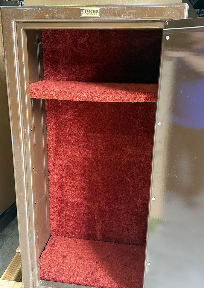 This Used Browning Prosteel Gold Series Safe from the 80's. It measures 60"x30"x23" and weighs 500 lbs. This safe does not contain a fire rating, but is focused on being a heavy duty security safe.
