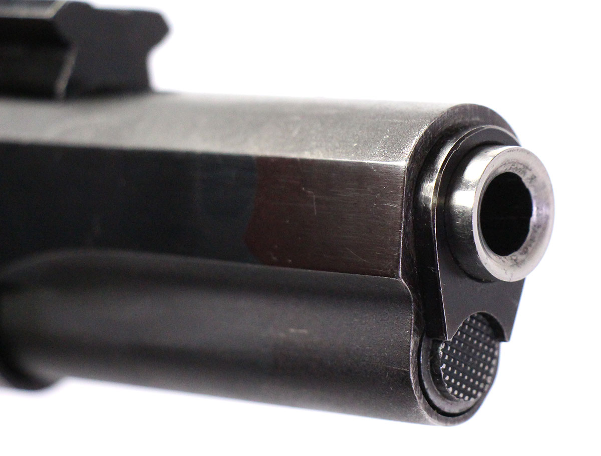This is a used Colt 1911 Series 70 pistol chambered in 38 Super. It features a 6-inch barrel, 9-round magazine, Clark Custom slide, thumb safety, grip safety, Weaver rail, blued finish, and checkered wood grips with Colt medallions. Overall, this Colt is in good condition with normal use wear on the barrel, slide, and frame. This would be a good choice for target shooting. Buy online today!