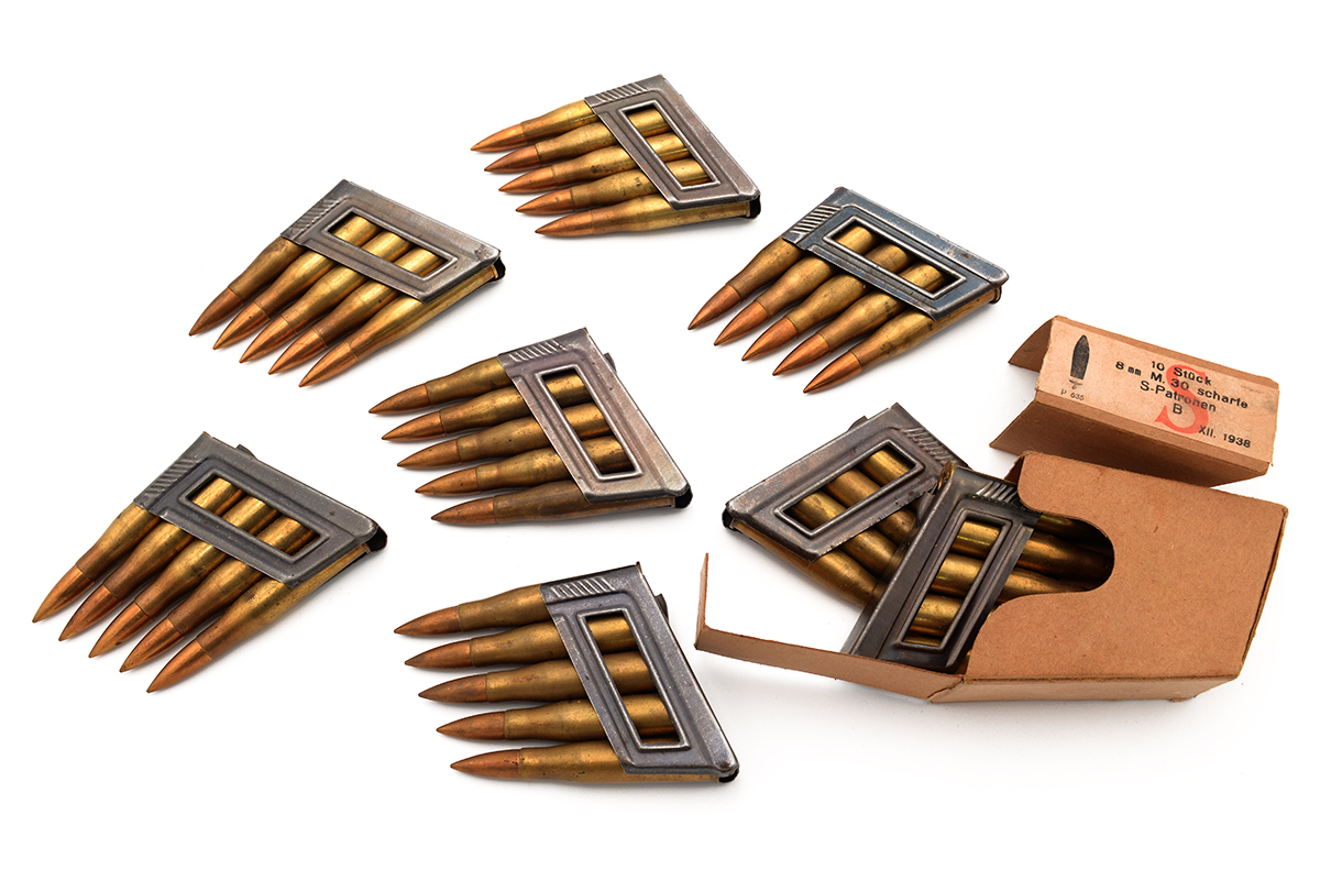 - German WW2 8x56R Ammo For Steyr M95 On Clips - Vintage Ammo