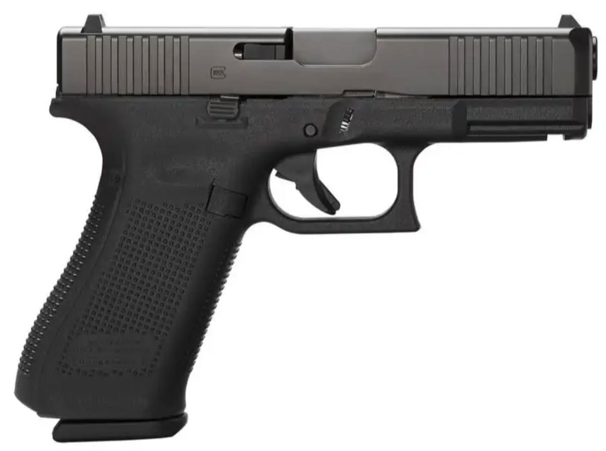 The Glock 45 Crossover combines a compact slide with a full size frame. Featuring a flared magwell has a larger funnel; Glock Marksman Barrel (GMB) more aggressive polygonal rifling with a target-style crown and tighter chamber specs; ambidextrous slide stop levers offer increased ergonomics for left-hand shooters and shooting with the support hand; removal of finger grooves; Safe Action System, safeties disengage sequentially as the trigger is pulled and automatically re-engage when the trigger is released; enlarged floor plate makes it easier to pull the magazine free of the pistol and customizable frame size with backstraps in two sizes with beavertail. The multiple backstrap frame allows the users to change the circumference of the grip to fit their individual hand size.