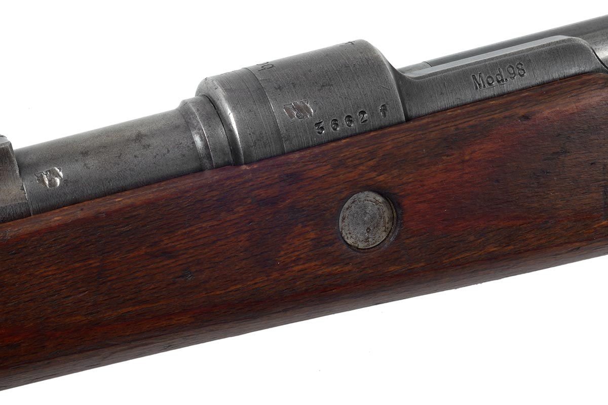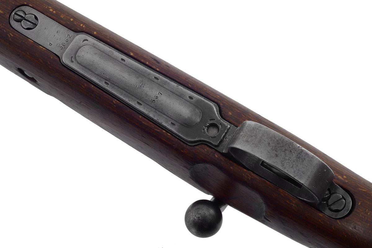 This is a German WW2 Gustloff-Werke (bcd) K98k Mauser chambered in 8x57. All visible numbers match except for the bolt and magazine floorplate. This gun is most likely a Russian capture rifle, fortunately kept mostly original. The date on the receiver indicates the rifle was manufactured in 1943. Overall condition is good with a bright shiny bore and strong rifling. it is import marked on the barrel by CAI. The Waffenamts on the barrel and receiver have been defaced but there are other parts on the rifle which still have them. This would be a great addition to any WW2 firearm collection! Buy online today!