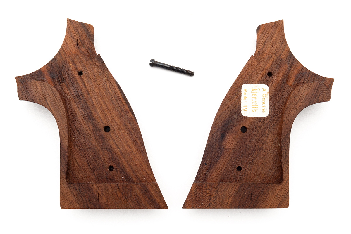 This is a set of vintage Harrett's Shooting Star Genuine Walnut Handgun Stocks, model RM. They feature wood construction with diamond checkering and will fit S&W N frame revolvers with square butt. Overall condition is very good, they don't appear to have ever been used, the box has some wear, stains and soft edges. Buy online today!