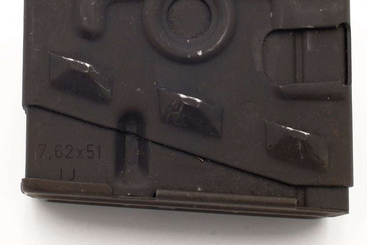 This is in original Heckler & Koch (HK) PSG1 trigger group with magazine. It features the trigger housing with "0 1" option, trigger group, wood grip and one 5 round HK magazine with 1989 date code. Overall condition is good with some light wear, scuffs and scratches from use, the trigger shoe is not included. Buy it online today!