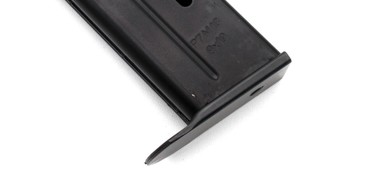 This is a West German-made Heckler & Koch P7 M13 9mm pistol. It features blued finish with "squeeze-cock" design and a unique gas-delayed blowback system. It features four-inch polygonal rifled barrel, and IE date code, indicating a 1984 date of manufacture. Overall, this gun is in very good condition with only a few spots of minor wear to the bluing along some of the edges and a very nice bore. It includes one original 13-round magazine. This would be a great addition to any gun collection or for personal defense. Buy online today!