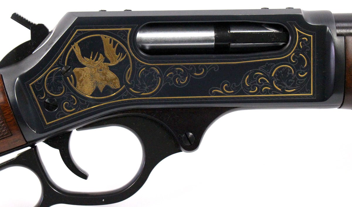 This is a used Henry Steel Wildlife Edition rifle chambered in 45-70 Government. It features an 18.43-inch barrel, 4-round magazine tube, semi-buckhorn rear sight, brass bead front sight, walnut stock, and factory drilled and tapped engraved receiver with 24 Karat gold inlay. Includes factory box and manual. Overall, this rifle is in very good condition with minimal wear. Bore condition is good with crisp rifling. This would be a great choice for collecting or hunting. Buy online today!