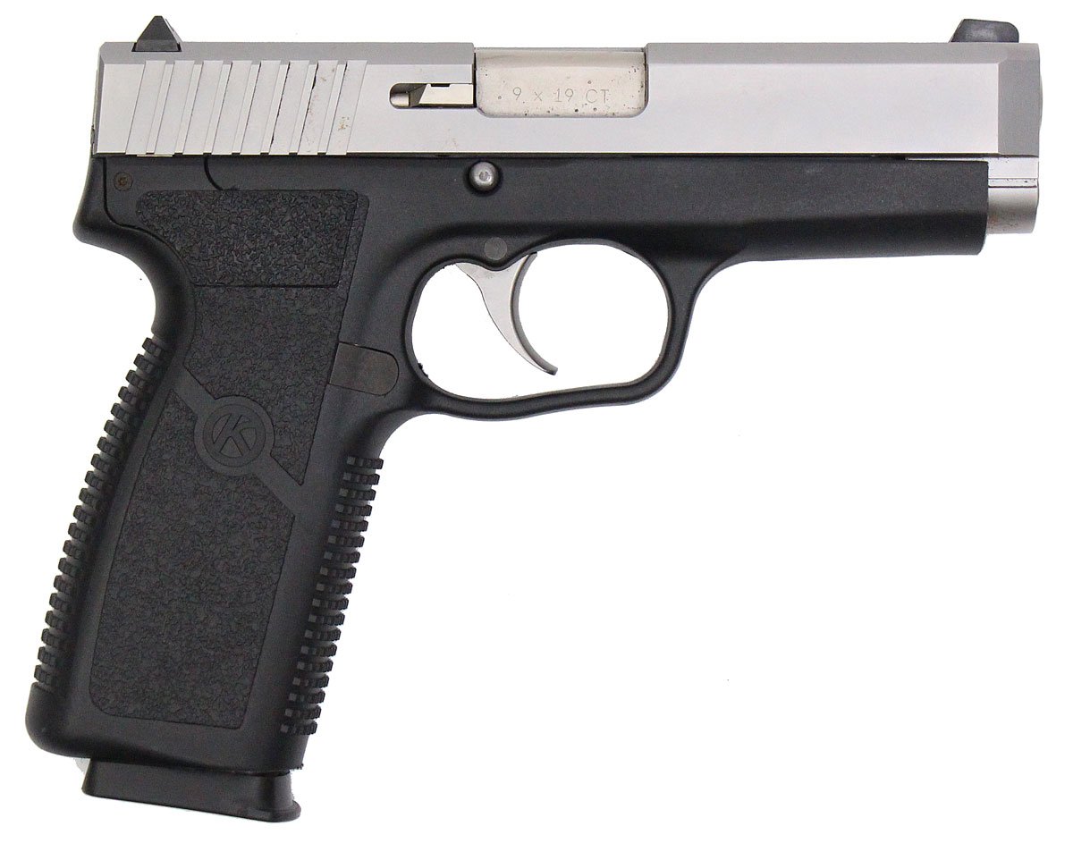 This is a used Kahr CT9 pistol chambered in 9mm. It features a 4-inch barrel, 8-round magazine, contrast sights, and stainless slide. Includes factory box. Overall, this Kahr is in good condition with normal wear on the slide and barrel. This would be a good choice for concealed carry. Buy online today!