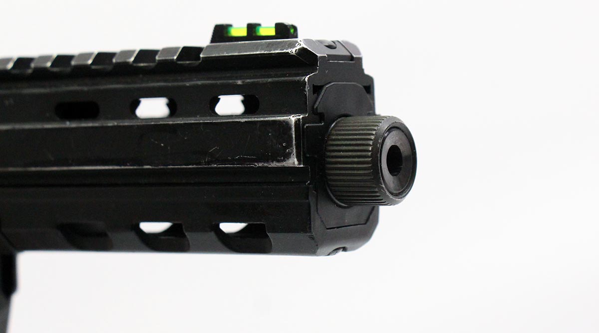 This is a used Kel-Tec CP33 pistol chambered in 22 Long Rifle. It features a 5.5-inch threaded barrel, 33-round magazine, fiber optic sights, picatinny optic rail, and ambidextrous safety. Overall, this Kel-Tec is in good condition with handling wear on the barrel shroud and frame. This would be a good choice for target shooting. Buy online today!