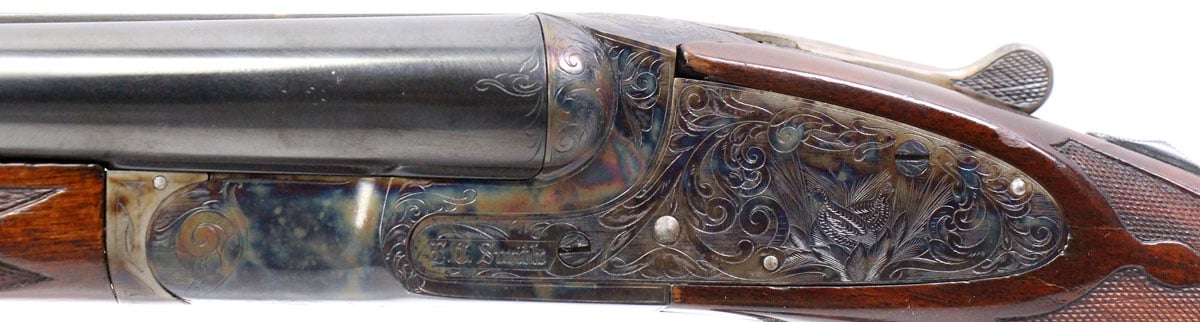 This is a classic L.C. Smith Specialty Grade shotgun chambered in 20 gauge. It features 26-inch barrels, 2.75-inch chambers, 14.125-inch length of pull, ejectors, manual safety, fixed full chokes, and repaired stock with professionally restored finish. Overall, this shotgun is in good condition with some handling wear on the stock. Based on serial range, this shotgun was manufactured in 1927. The left barrel is marked "Hunter Arms Co. Fulton, NY". This would be a good choice for vintage shotgun collectors. Buy online today!