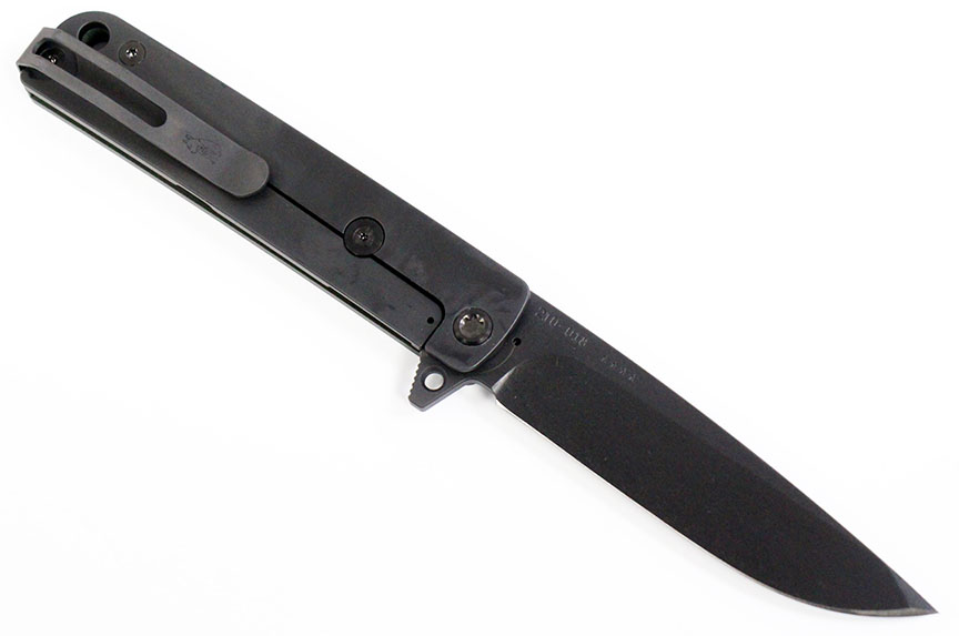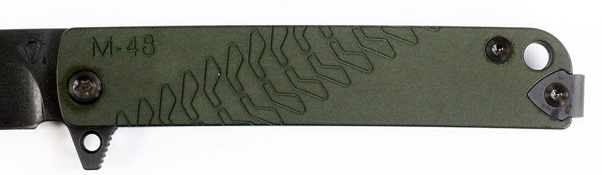 Medford M-48 S45VN DLC Green Folding Knife. This knife has a utilizes a green handle, DLC spring, and DLC hw/clip.