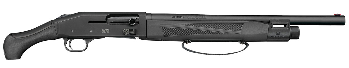 The 990 AfterShock small size, big tactical performance. Ultra-compact and easy to maneuver, it delivers 5+1 semi-auto convenience paired with a host of functional tactical features. Inside, the 990's durable gas system and corrosion-resistant internal parts (nickel boron-coated gas piston, magazine tube, hammer and sear), an enlarged/beveled loading port, elongated elevator and anodized follower combine for smooth operation. The ergonomic AfterShock grip with rubberized palm pad, a streamlined forend with Mossberg signature texturing and an embossed strap for a solid hold; plus a magazine tube extension with M-LOK mounting slots on the sides and bottom for easy accessory. 5+1 Capacity w/2.75" shells.