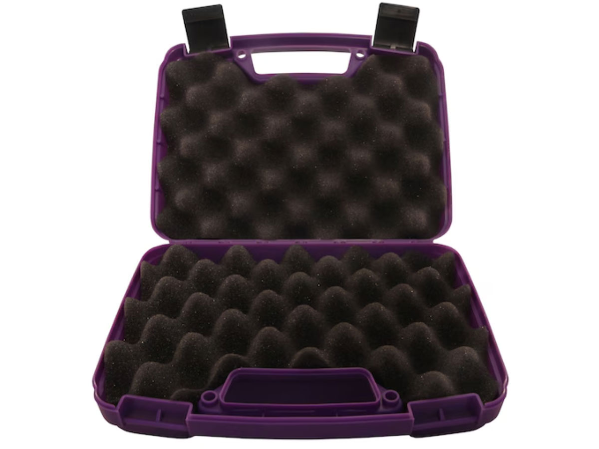 MTM's latest line of firearm cases is their exclusive PACKED-N COLOR, featuring a purple finish. All four of MTM’s Snap Latch, Handgun Cases offer durable construction, reliable snapping latches and a large comfortable handle. Each is made of rugged polypropylene with a handsome textured finish. Thick foam padding and double padlock tabs are provided for the utmost in protective security.
