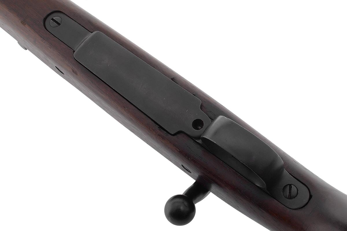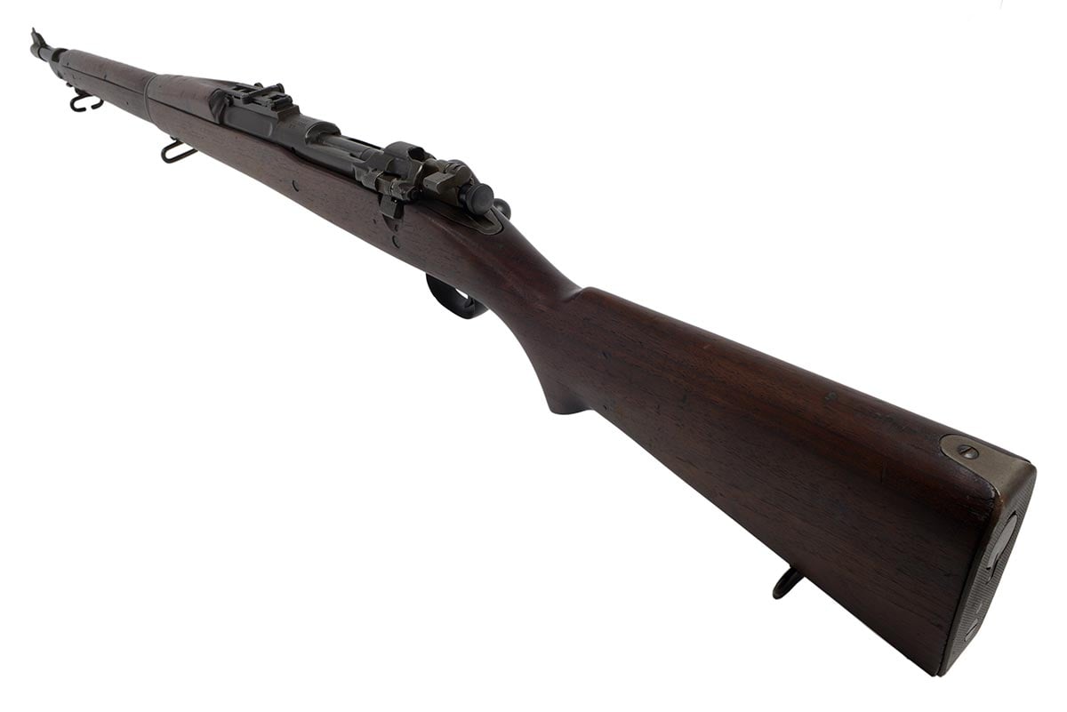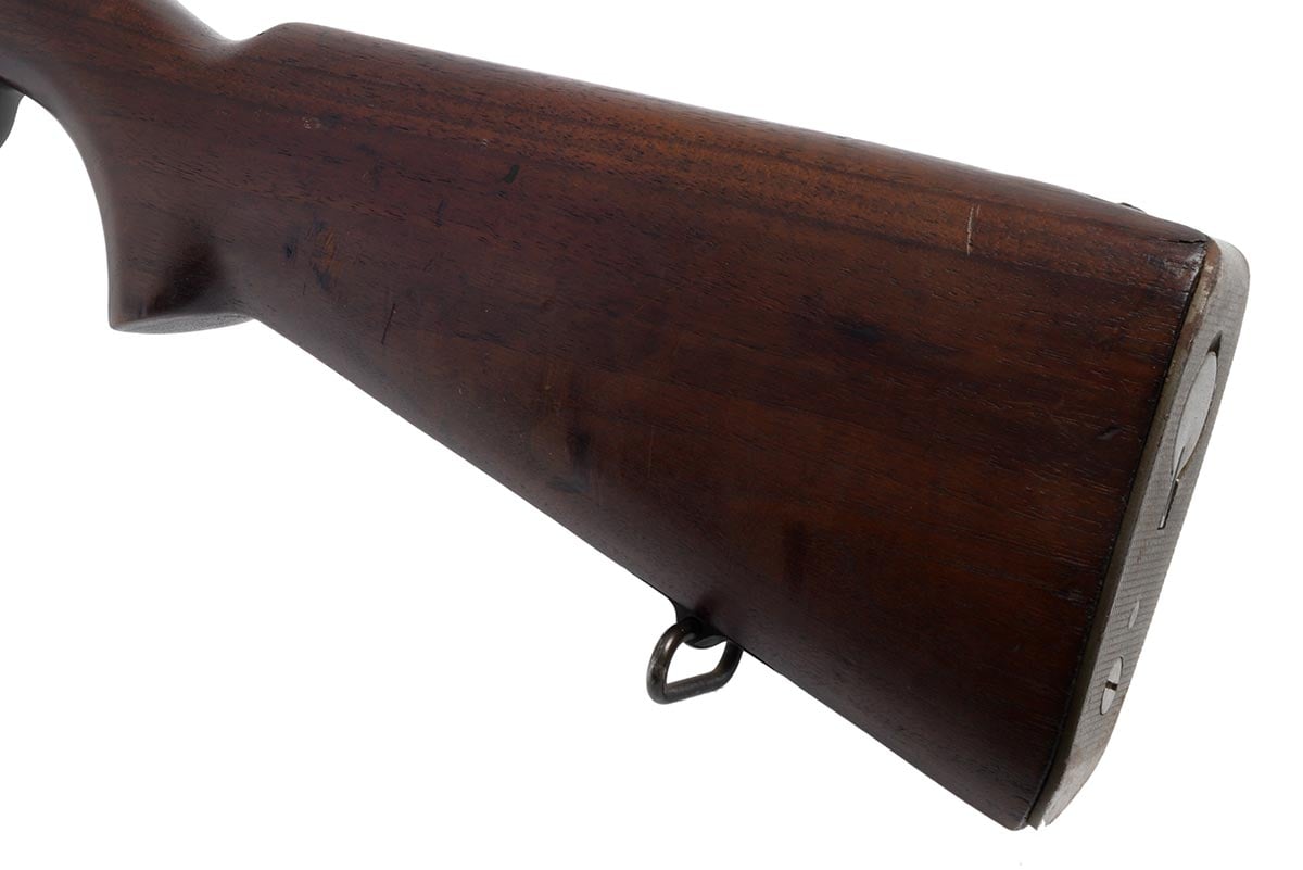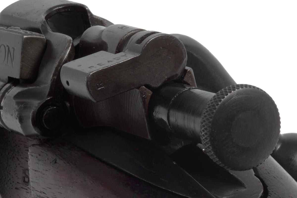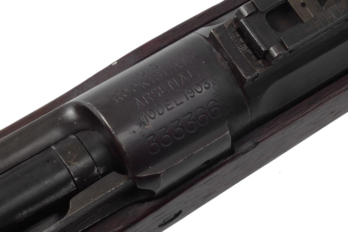 This is a Rock Island Arsenal Model 1903 rifle chambered in 30-06 and manufactured in 1919. It features a 24-inch barrel manufactured by Springfield Armory in March, 1931. The Type C "Scant" stock is a later replacement. it has a "D1836" drawing number in front of the rear sling swivel and is marked in the cut-off recess "S C". The bolt appears to be a Springfield replacement marked "L" with a punch mark on the underside of the handle. The safety is marked "R" which indicates Remington. Overall condition is good; the bore is bright and shiny with strong rifling and there is only minimal wear to the metal finish. The stock is in nice original shape with some scuffs, dings, nicks and pressure marks. This would be a great addition to any US military rifle collection or for recreational target shooting. Buy online today!