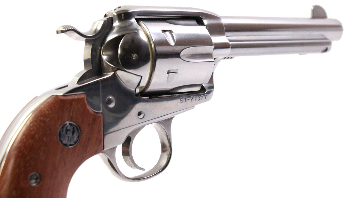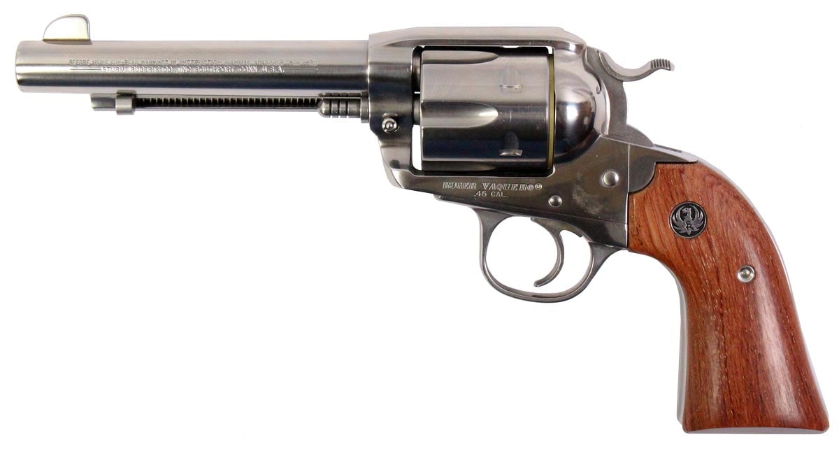 This is a used Ruger Vaquero Bisley revolver chambered in 45 Long Colt. It features a 5.5-inch barrel, 6-round cylinder, transfer bar safety, stainless finish, and wood grips. Includes factory box and manual. Overall, this revolver is in good condition with normal use cylinder draglines. This would be a good choice for recreational target shooting. Buy online today!