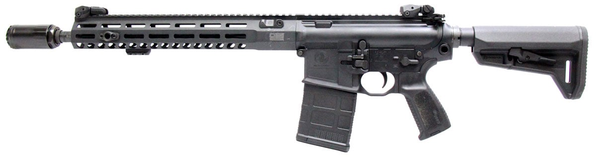 This is a used Sig Sauer 716i Tread rifle chambered in 7.62 NATO and 308 Winchester. It features a 16-inch barrel, 20-round magazine, Huxwrx Blastphemy blast deflector, MLOK handguard, and Magpul SL-K stock. Includes factory box and manual. Overall, this Sig is in good condition with normal wear on the receiver and handguard. Bore condition is good with crisp rifling. This would be a good choice for target shooting. Buy online today!