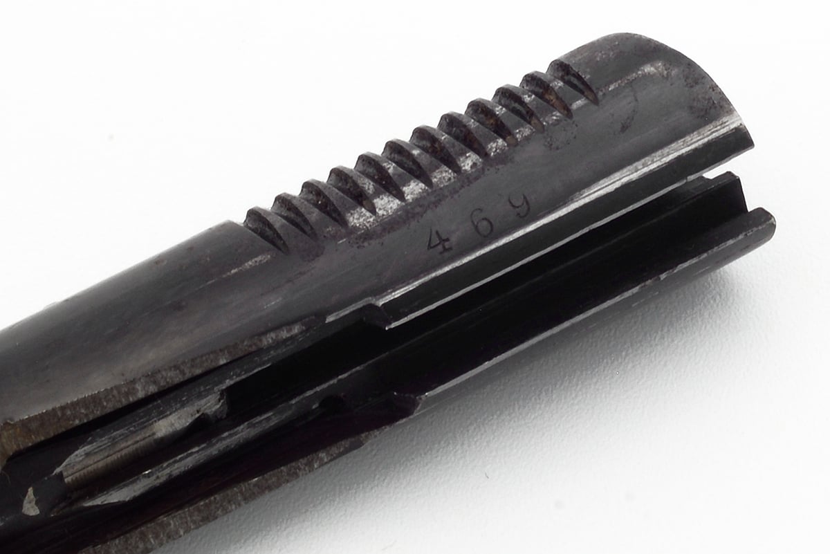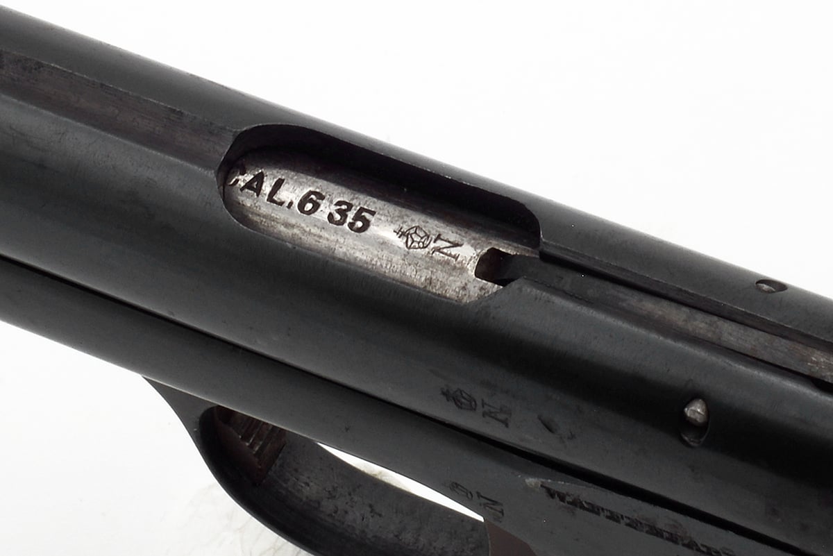 This is a rare Simson Model 1922 Vest Pocket pistol. It features a 2" barrel and 6 round capacity of 6.35mm (25 ACP) ammo with blued finish and hard rubber grips and was manufactured sometime in the early 1920's. The left side of the frame is marked with the early rollmark "WAFFENFABRIKEN SIMSON & CO. SUHL,” over the Simson logo and on the right side of the slide is marked “SELBSTLADEPISTOLE SIMSON D.R.P.", the top of the barrel is marked “CAL 6.35” and a nitro proof mark. All of the numbers appear to be matching, it has a three digit serial number with 12 serration slide and concentric circles on the safety lever which makes this a very early model but late enough to have the synthetic grips with screw. Unfortunately this Model 1922 is in non-working condition, it needs a new firing pin as the one that is currently installed is slightly out of shape and someone has modified it to try and create a sear engagement notch but their efforts were in vein as it does not catch onto the sear and hold it back as it should. Due to the nature of the issue with the firing pin it is very possible it could cause a slam fire so the firearm will be shipped without the firing pin and spring inserted, we suggest a qualified gunsmith look at it before being installed.