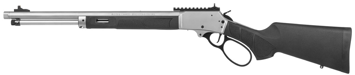 The Model 1854 by Smith & Wesson lever-action rifle seamlessly melds precision engineering and timeless design with modern features, including M-LOK slots; Picatinny rail for optics and accepts mounts compatible with Marlin 1894 hole pattern.
