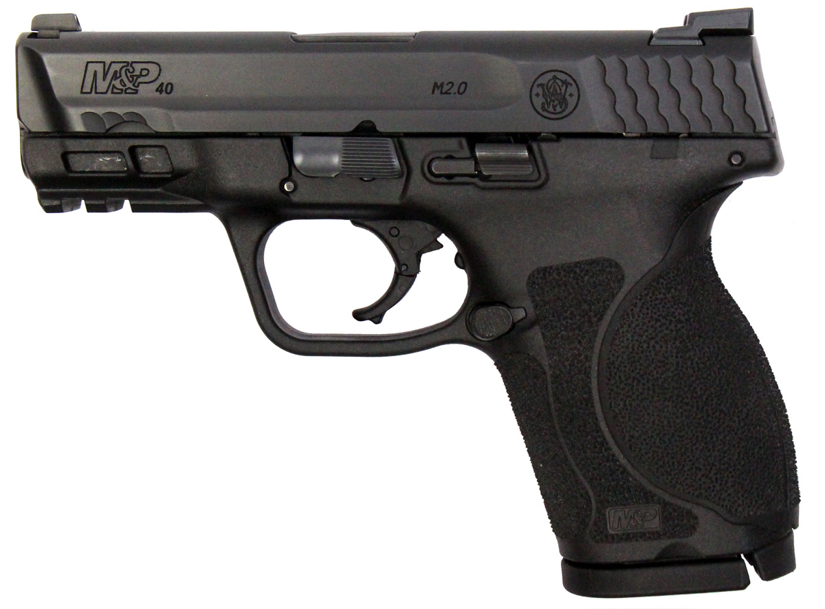 This is a used Smith & Wesson M&P 40 Compact M2.0 pistol chambered in 40 Smith & Wesson. It features a 3.6-inch barrel, 13-round magazines, night sights, replaceable backstraps, and accessory rail. Includes factory box and three magazines. Overall, this Smith is in good condition with normal wear on the slide and barrel. This would be a good choice for concealed carry. Buy online today!