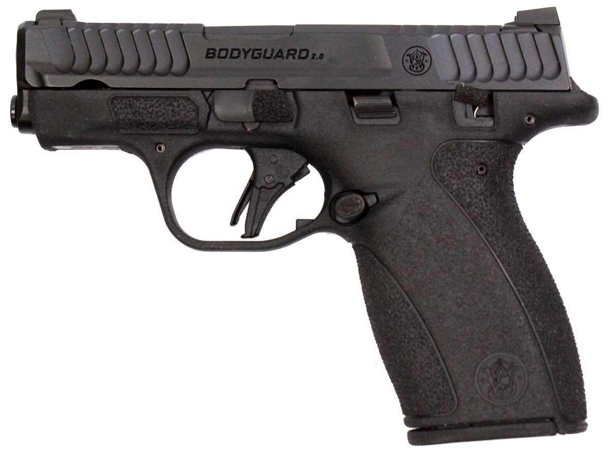 This is a used Smith & Wesson M&P Bodyguard 2.0 pistol chambered in 380 ACP. It features a 2.75-inch barrel, 12-round magazine, tritium front sight, and ambidextrous thumb safety. Includes factory box, instruction manual, one 10-round magazine, and one 12-round magazine. Overall, this Smith is in good condition with normal use wear on the slide and barrel. This would be a good choice for concealed carry. Buy online today!