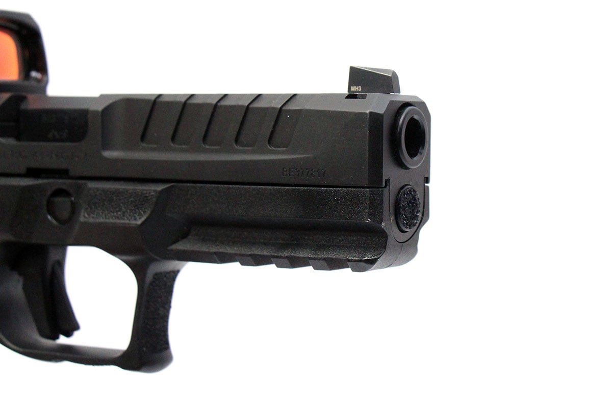 This is a used Springfield Armory Echelon pistol chambered in 9mm. It features a 4.5-inch barrel, 20-round magazine, night sights, Holosun SCS 320 green dot sight, and accessory rail. Overall, this Springfield is in good condition with normal wear on the slide and barrel. This would be a good choice for home defense. Buy online today!