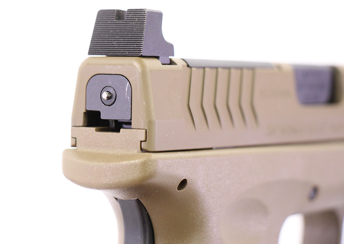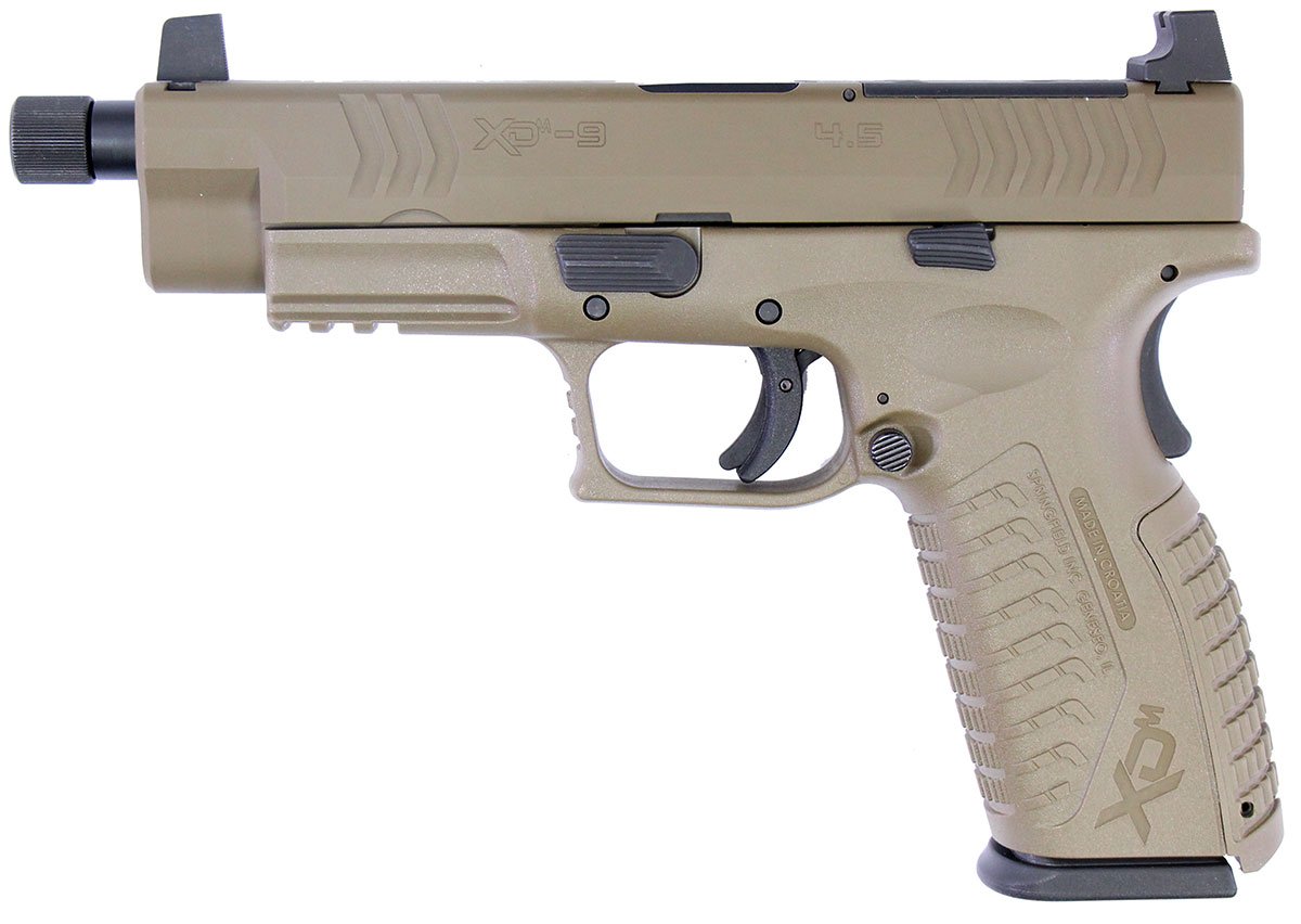 This is a used Springfield Armory XDM pistol chambered in 9mm. It features a 5.25-inch threaded barrel, 19-round magazine, grip safety, optics ready slide, suppressor height sights, accessory rail, and flat dark earth finish. Includes factory box, nylon case, instruction manual, and two magazines. Overall, this Springfield is in good condition with normal wear on the slide and barrel. This would be a good choice for home defense. Buy online today!