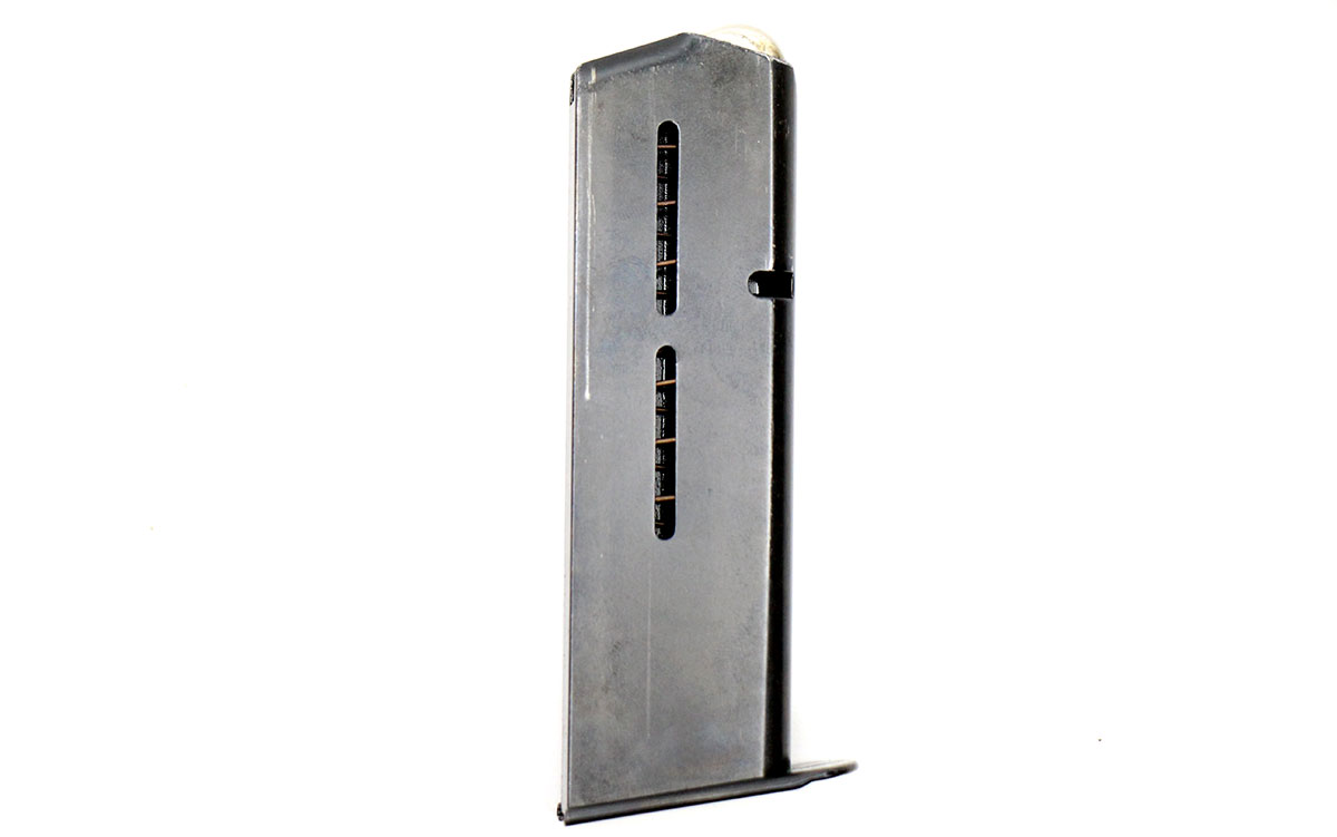 This is a vintage Star Model B pistol chambered in 9mm. It features a 5-inch barrel, 8-round magazine, thumb safety, fixed sights, blued finish, and synthetic grips. Overall, this Star is in good condition with some cosmetic wear on the barrel, slide, and frame. The frame bears Garcia Corp import marks. This would be a good choice for military surplus collecting. Buy online today!
