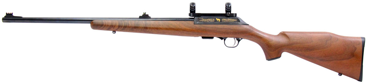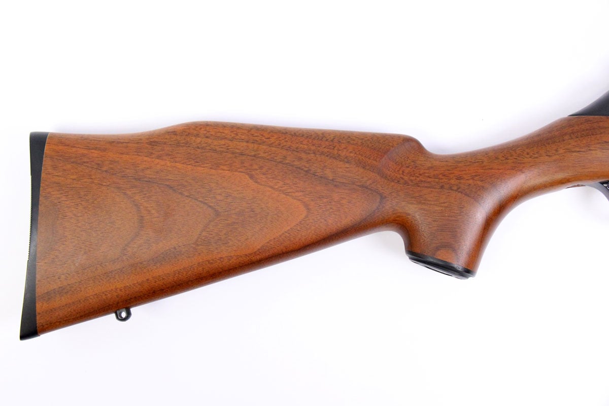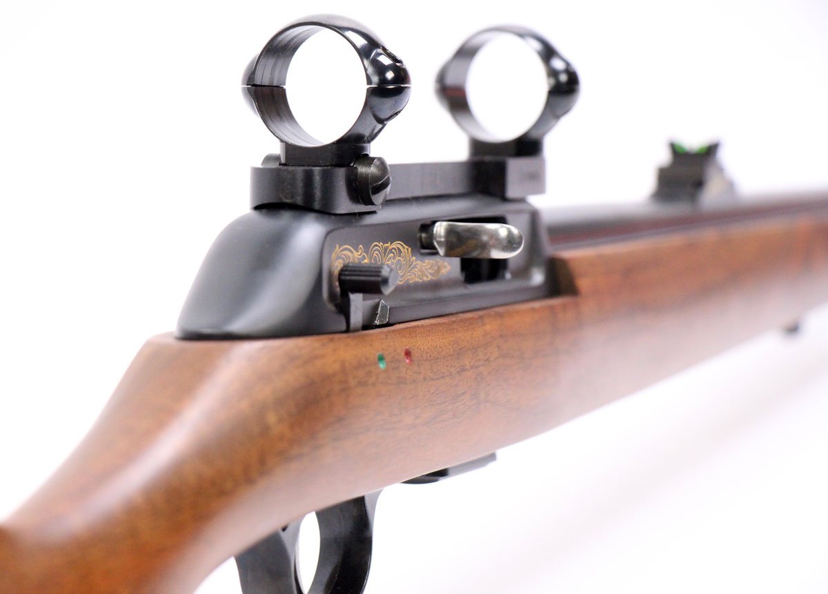 This is a used Thompson Center Classic 22 Engraved rifle chambered in 22 Long Rifle. It features a 22-inch barrel, 5-round detachable magazine, 1-inch scope rings, fiber optic sights, walnut stock, sling studs, blued finish, and factory engraved receiver. Overall, this rifle is in good condition with some handling wear on the barrel. Bore condition is good with crisp rifling. This would be a good choice for small game hunting. Buy online today!