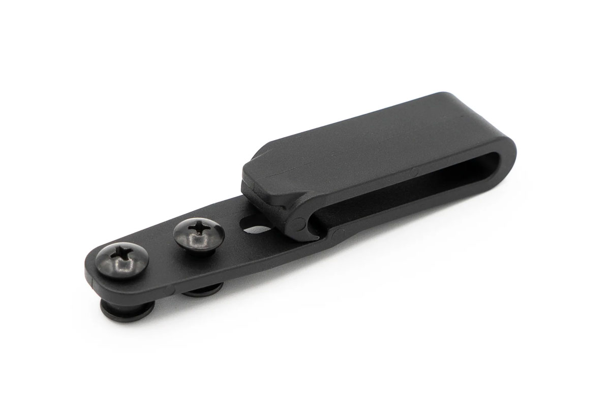 The Inside Waistband Belt Clip offers an adjustable cant as well as a 1.75” loop for belts and was designed to be worn on the inside of your waistband, for ultimate concealment. A reverse hook ensures an anchored draw, while the beveled plastic edges provide a comfortable fit, whether sitting or standing.