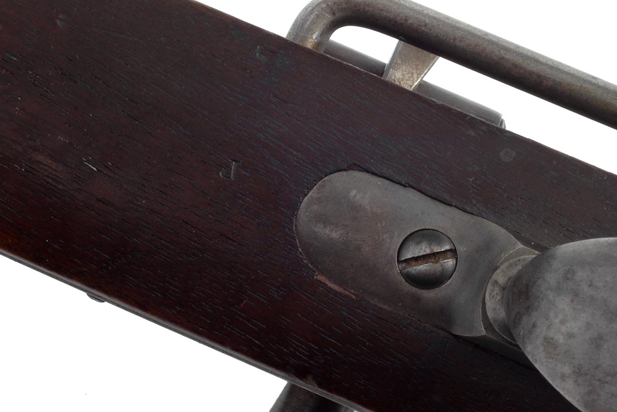 This is an exceptional example of a US Civil War-era Joslyn Model 1864 Carbine chambered in .52 Rimfire. It features a breech-loading design with 22-inch barrel. First introduced in 1864, Joslyn Carbines saw limited use during the Civil War. Cartouches include "GWS" (George W. Sherman) stamp on left side of barrel. Sherman is listed as inspector on the Joslyn 1864 carbine. The left side of stock has two identical cartouches in rectangular box "FDL" (Frederick D. Livingston). Livingston was a noted inspector of the Second Model Joslyn carbine. Livingston inspected at least 8,000 Joslyn carbines delivered between July 1864 and February 1865. The buttplate is stamped "US". Just ahead of the buttplate is another black letter "FDL" cartouche. Lock is stamped "JOSLYN FIREARMS CO. STONINGTON CONN" and dated 1864. The rear of the breechblock exhibits the clear patent stamping of “B.F. JOSLYN’S PATENT / OCTOBER 8TH 1861 / JUNE 24th 1862”. Overall condition of this carbine is above average with a bright shiny bore and sharp rifling. Everything works as it should; it probably shoots as good today as it did 162 years ago. The wood is in very fine original shape with clear markings. There is what appears to be a bullet scar on the bottom of the buttstock, and chip just behind the barrel band on the right side. The barrel retains most of the original bluing and the lock still has very nice case coloring. This is a museum grade example of an 1864 Joslyn. Buy online today!