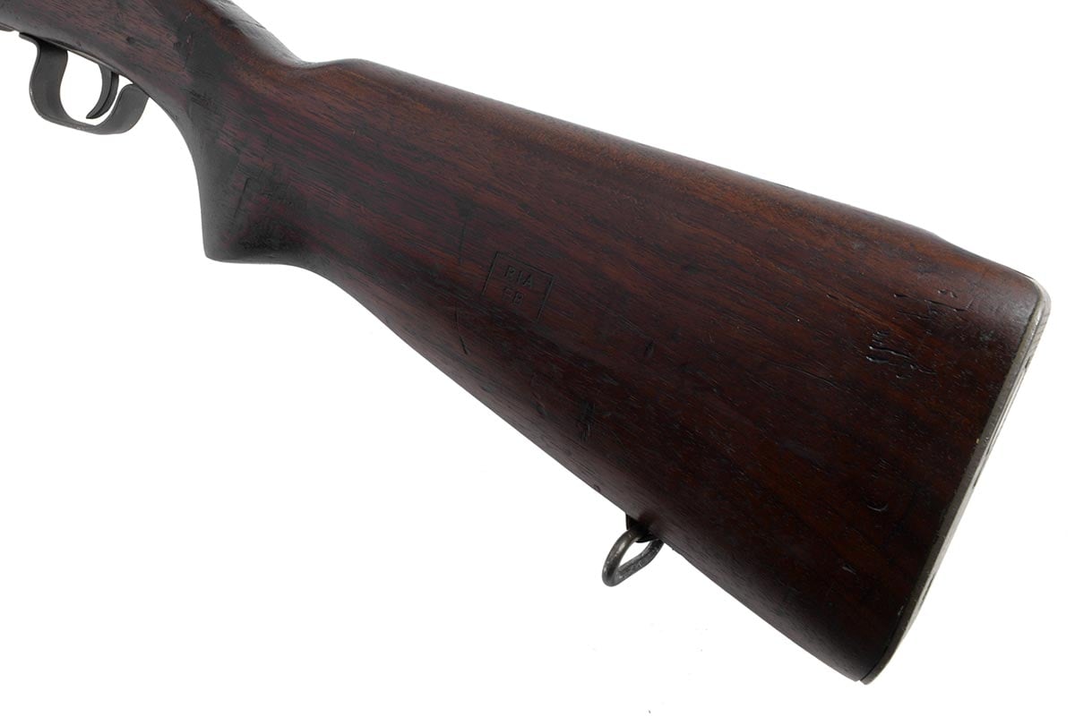 This is a U.S. Remington Model 03-A3 reproduction sniper rifle chambered in 30-06. It features a 24-inch Remington Arms barrel dated "9-43", parkerized finish, and has been very nicely converted to resemble a 1903A4 sniper rifle. This rifle was manufactured in 1944 and the left side of the stock is marked "RIA EB," which indicates a post-WW2 rebuild supervised by Elmer Bjerke, foreman of Small Arms Inspection at Rock Island Arsenal from 1947 to 1958. The rifle has been drilled and tapped for a scope mount and fitted with a Hi-Lux Optics reproduction M82G2 scope with crosswire and post reticle. Overall condition is good with a bright shiny bore and strong rifling. There is some minor wear to the metal finish along with a few light scratches. The wood is in nice original shape with some scuffs, dings, nicks, and pressure marks, but markings are easy to see. Also included is a cleaning kit that fits into the buttstock. This would be a good choices for anyone looking for a nice representation of a 1903A4 without the hefty price tag of a genuine 03-A3 Sniper. Buy online today!