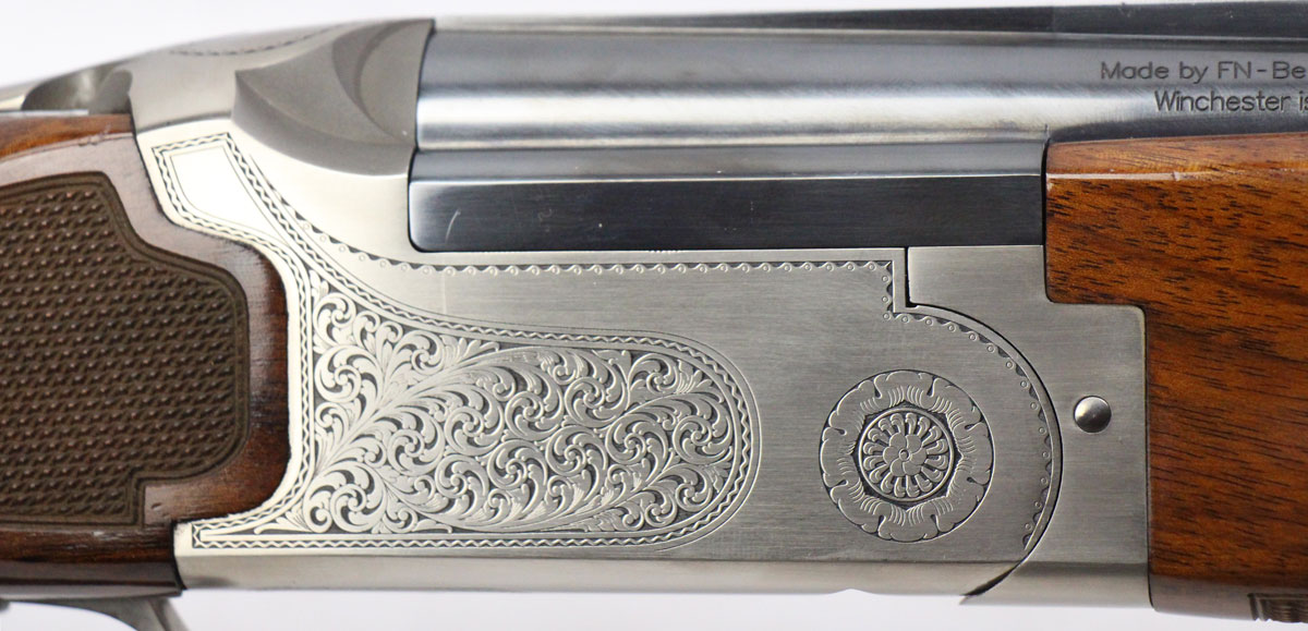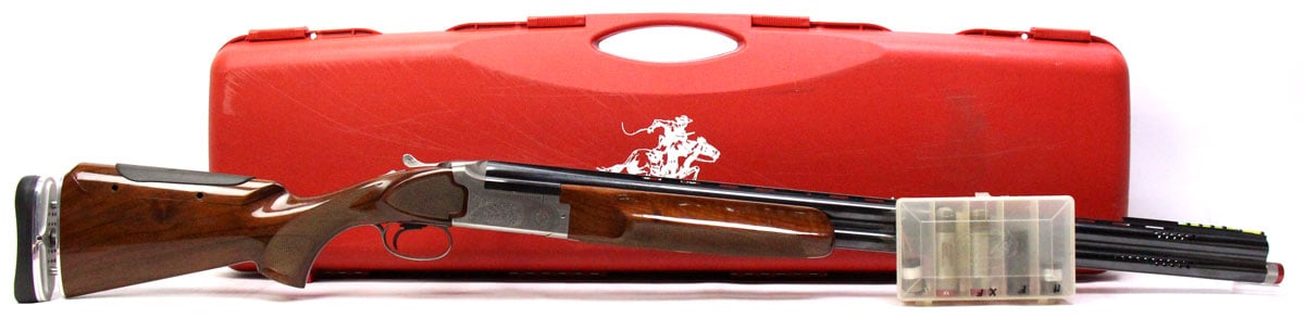 This is a used Winchester Pigeon Grade 101 Trap shotgun chambered in 12 gauge. It features 30-inch ported barrels, 2.75-inch chambers, adjustable length of pull, adjustable comb, recoil-reducing recoil pad, manual safety, ejectors, and screw-in chokes. Includes Winchester shotgun case, flush cylinder choke, flush improved cylinder choke, extended modified choke, extended full choke, and extended extra full choke. Overall, this shotgun is in good condition with some handling wear on the stock. The barrel is marked "Made by FN Belgium" on the right side. This would be a good choice for trap shooting. Buy online today!