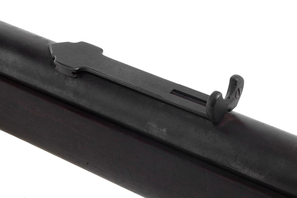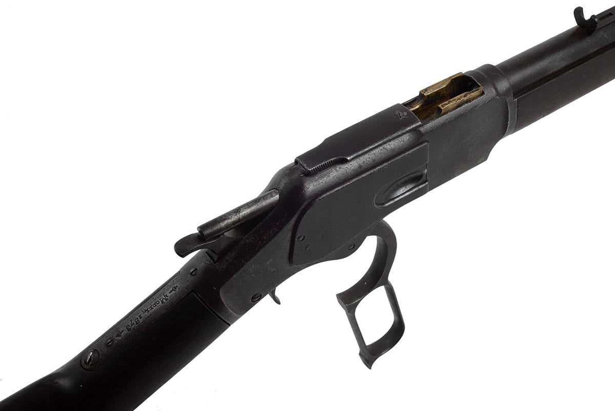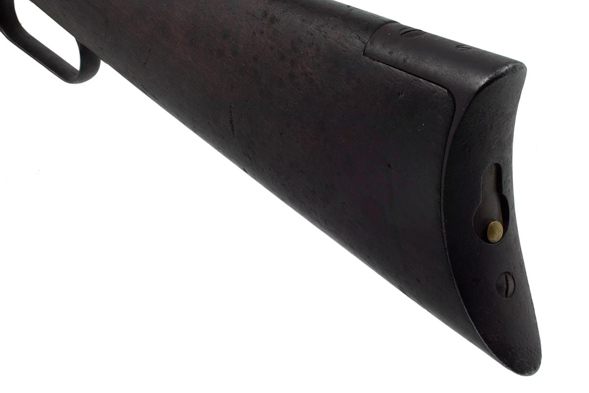 This is an antique Winchester Model 1873 rilfe chambered in 38-40 Winchester. It features a 24-inch round barrel and was manufactured in 1889. Overall condition of the rifle is good considering it's 137 years old. The bore still has decent shine, but there is some corrosion and spots of pitting. Rifling is worn, but still visible. The metal still retains some of the original bluing, but there is lots of patina and areas of corrosion. The wood is in decent shape with no cracks, but there are plenty of scuffs, dings and pressure marks. Mechanically everything works as it should. The rear sight is missing the elevator. This would be a great addition to any Winchester collection. Buy online today!