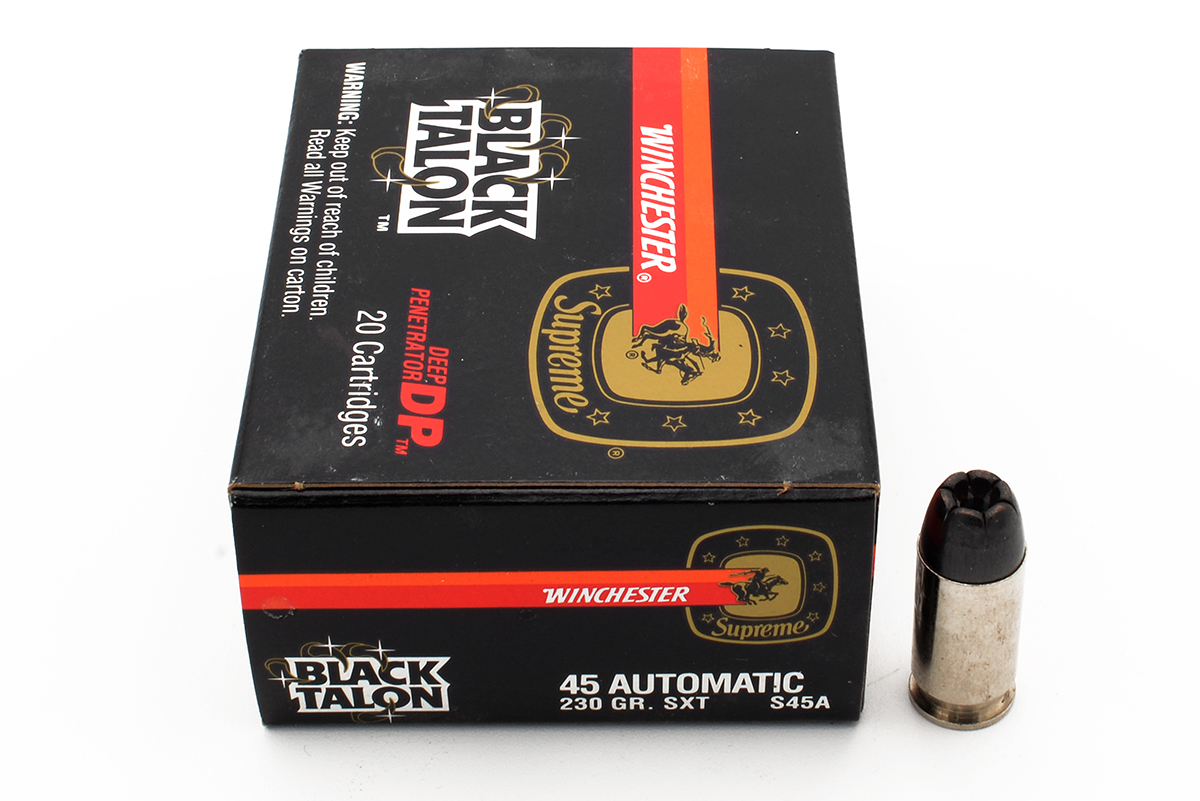 - Winchester Supreme Black Talon 45ACP 230 Grain SXT Ammo, 25 Boxes In Case - Scarce Ammunition